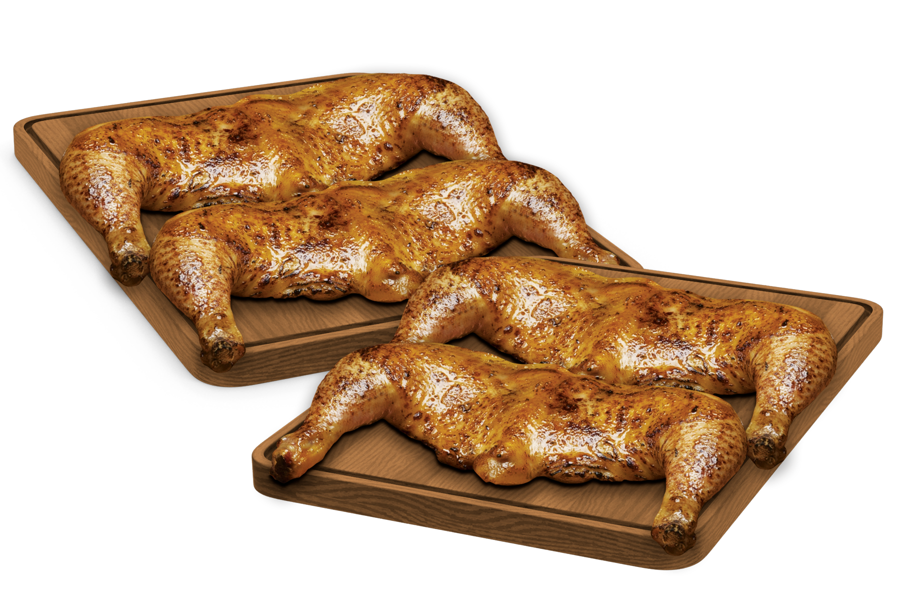 Disfruta el mejor sabor del pollo asado en el corte más rendidor: mitades de pollo (piernas y muslos).